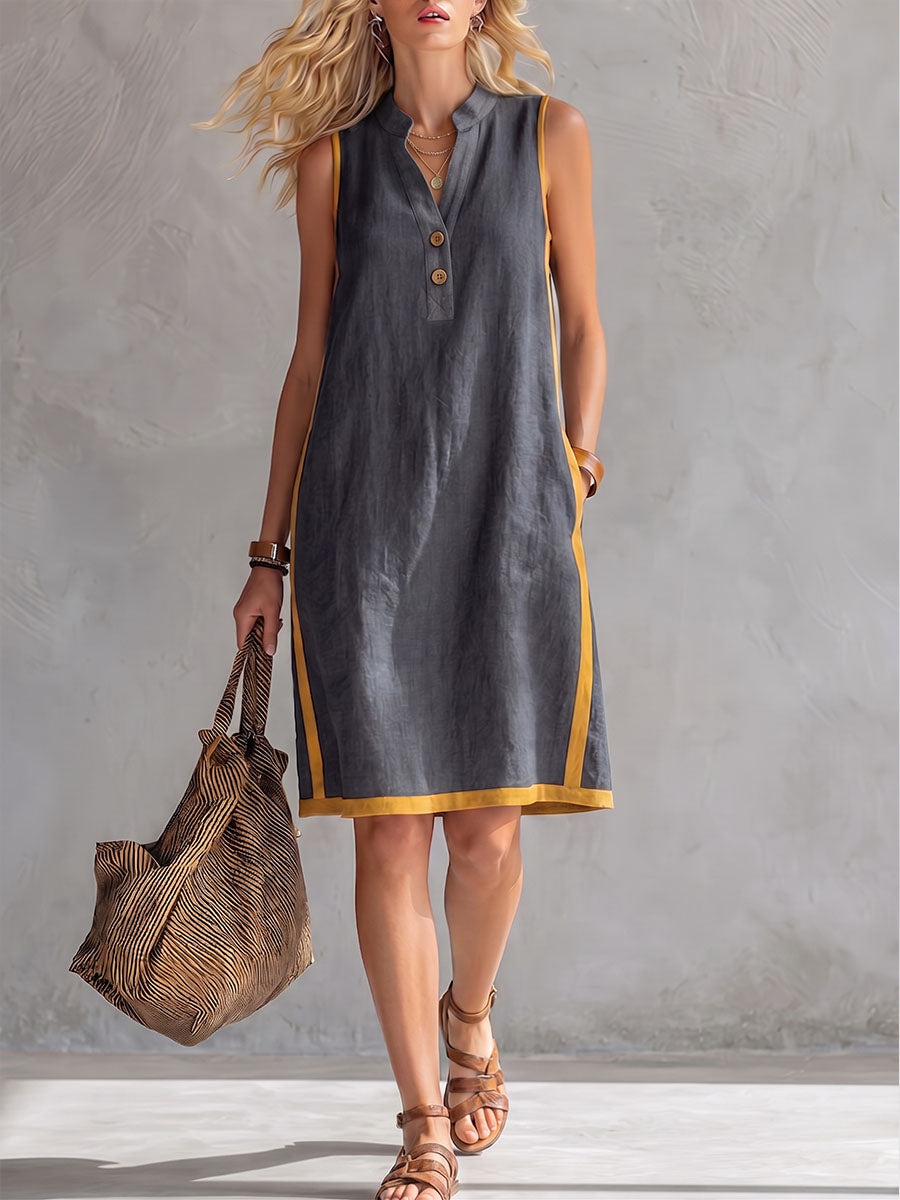 Women's V-neck Sleeveless Casual Loose Cotton-linen Dress